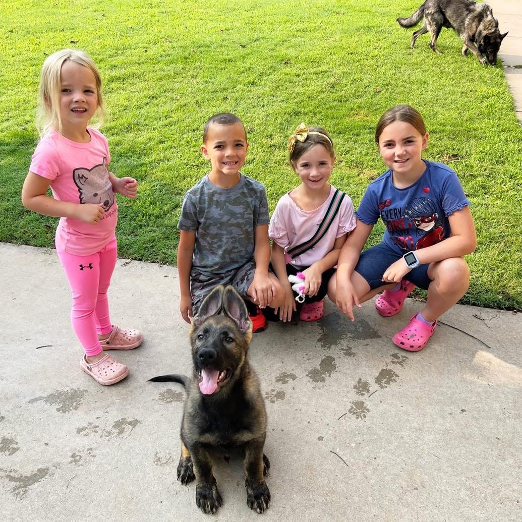 Our comprehensive training program begins before your puppy ever comes home. While many breeders send puppies home at 6–8 weeks old, Red Rock K9 puppies remain with us longer so we can begin structured training during the most important developmental stage of their lives.